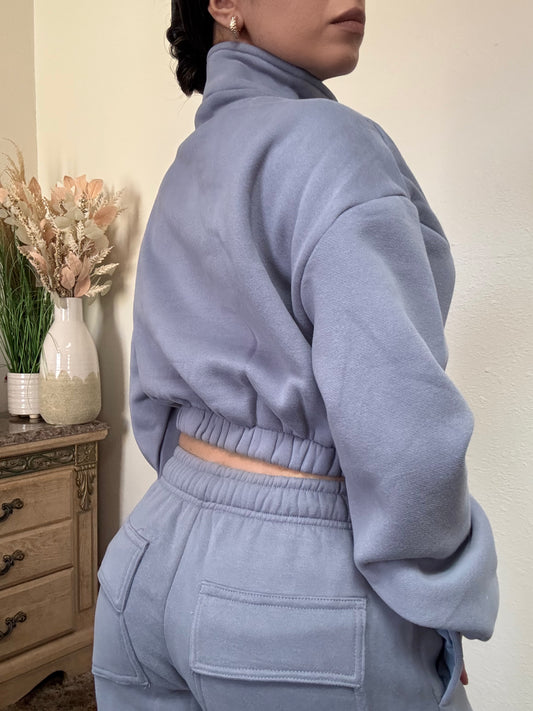 Essential Half Zip Up Cropped Pullover (French Blue)