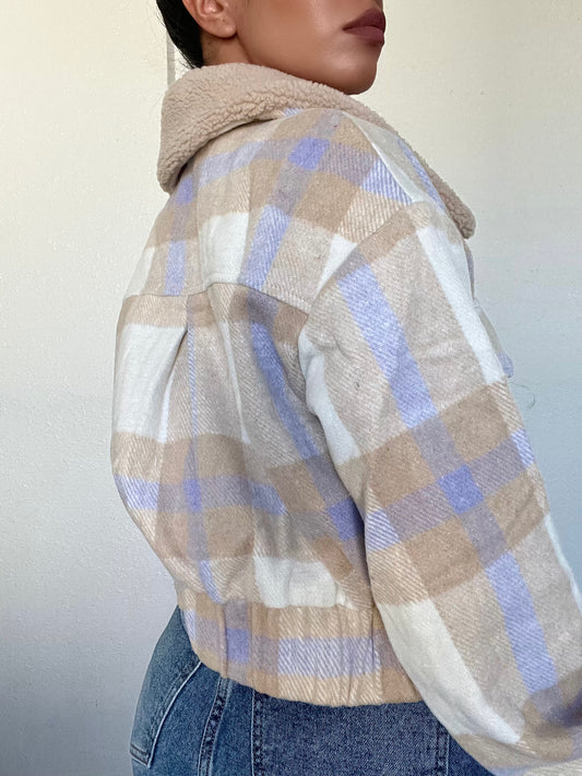 Sold outPlaid Sherpa Cropped Jacket -Tan