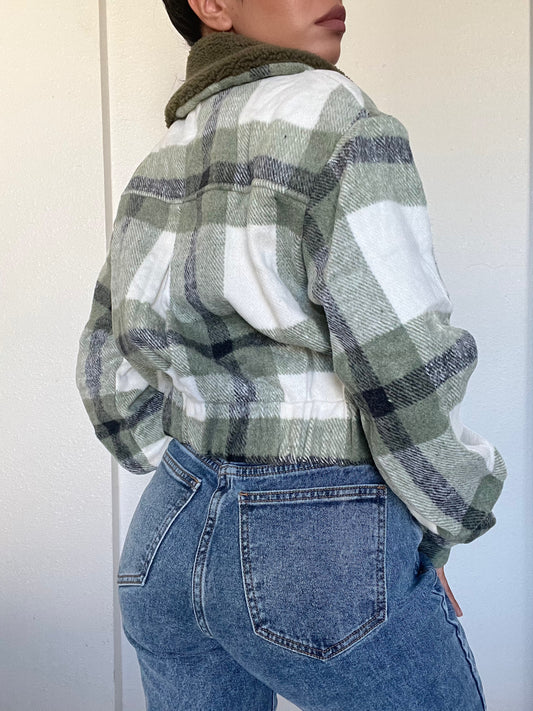 Sold outPlaid Sherpa Cropped Jacket -Olive