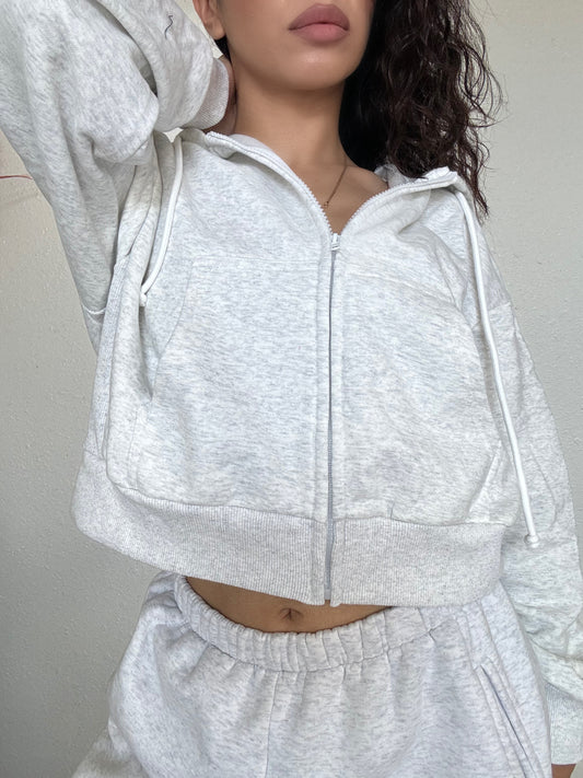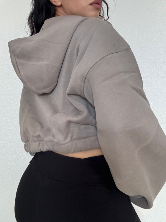 Sold outCropped Zip Up Fleece Hoodie -Grey