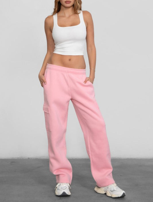 Essential Fleece Cargo Sweatpants -Blush