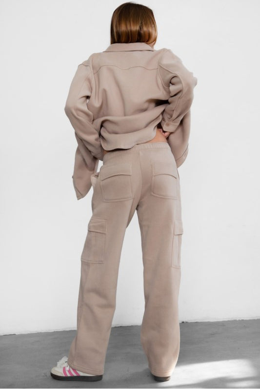Essential Fleece Cargo Sweatpants -Taupe