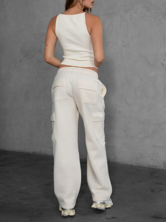 Essential Fleece Cargo Sweatpants -Ecru
