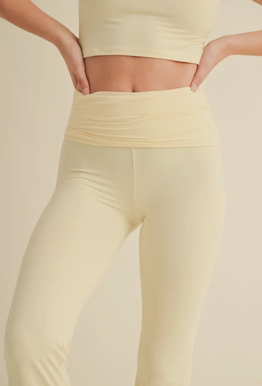 Ultra Soft Fold Over Pants -Lemon