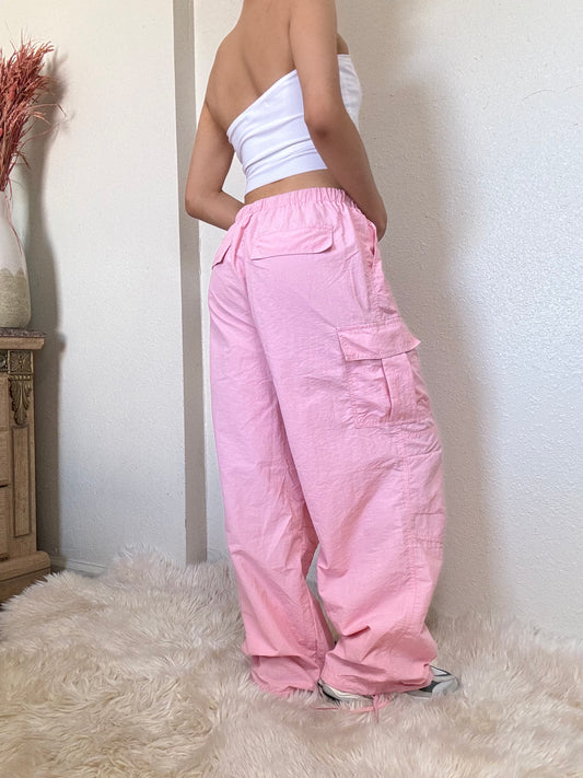 Sold outMid Rise Parachute Cargo Pants -Pink