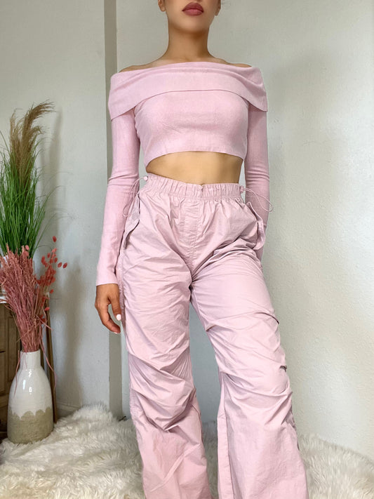 Sold outMid Rise Pull On Cargo Pants -Cream