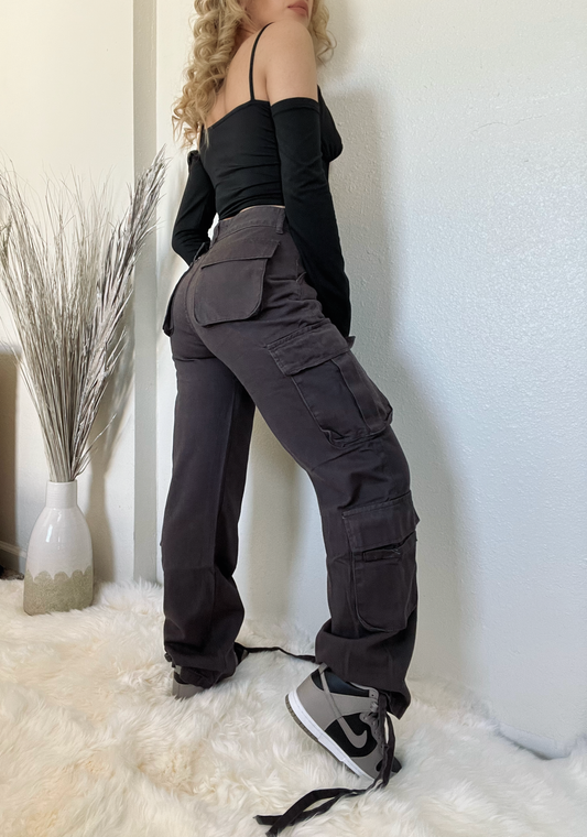 Sold outHigh Waisted Cargo Pants- Dark Grey