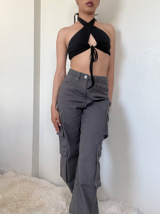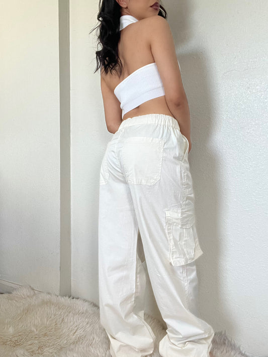 Sold outMid Rise Pull On Cargo Pants -Cream