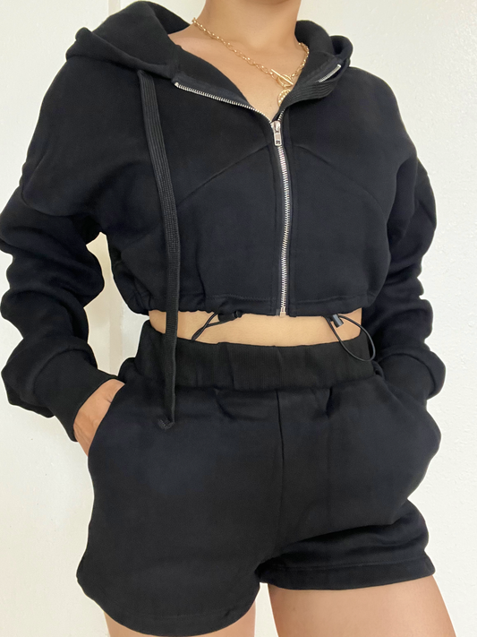 Sold outFleece Jacket Short Set -Black