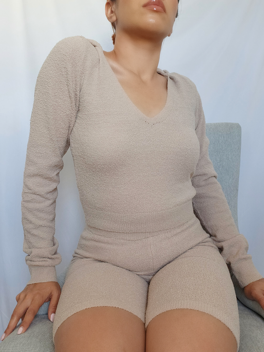 Fuzzy Biker Short Set -Taupe